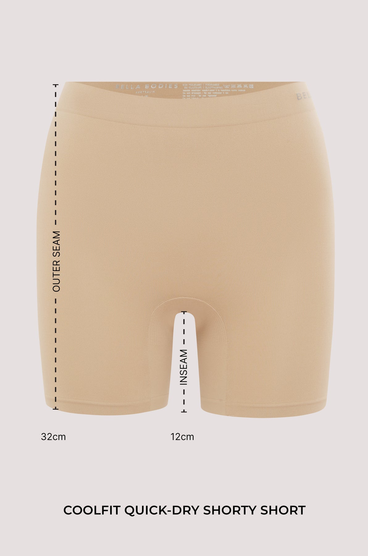 Bella Bodies CoolFit Quick-Dry Anti-Chafing Shorts Range - Length Options Long Outer Seam 38cm x Inseam 19cm, Short Outer Seam 32cm x Inseam 12cm